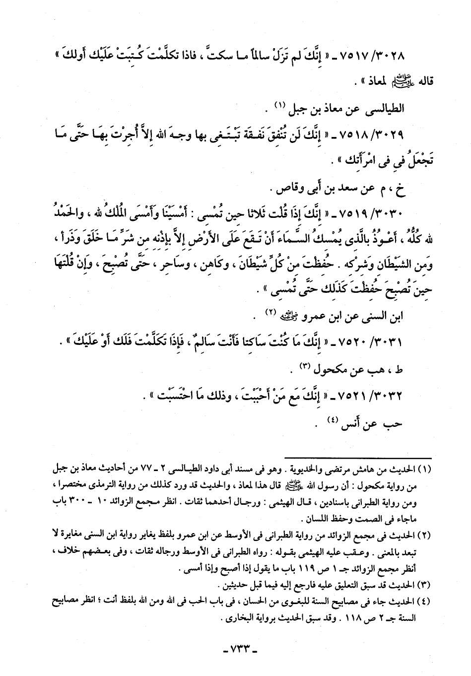 3028/ 7517 - "إِنَّكَ لم تَزَلْ سالمًا ما سكتَّ، فإذا تكلَّمْتَ كُتِبَتْ عَلَيْك أو لكَ" قاله -صلى اللَّه عليه وسلم- لمعاذ".