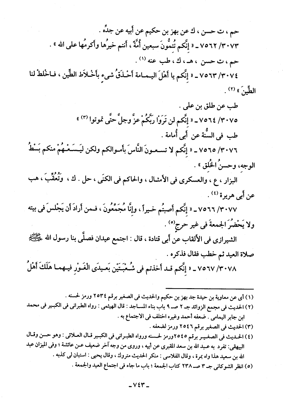 3073/ 7562 - "إِنَّكم تُتِمُّونَ سبعين أُمَّةً، أنتم خيرُها وأَكرمُها على اللَّه".