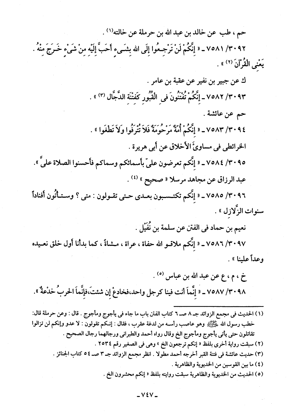 3093/ 7582 - إِنَّكُمْ تُفْتَنُونَ فِى الْقُبُورِ كَفِتْنَةِ الدَّجَّال (¬3) ".