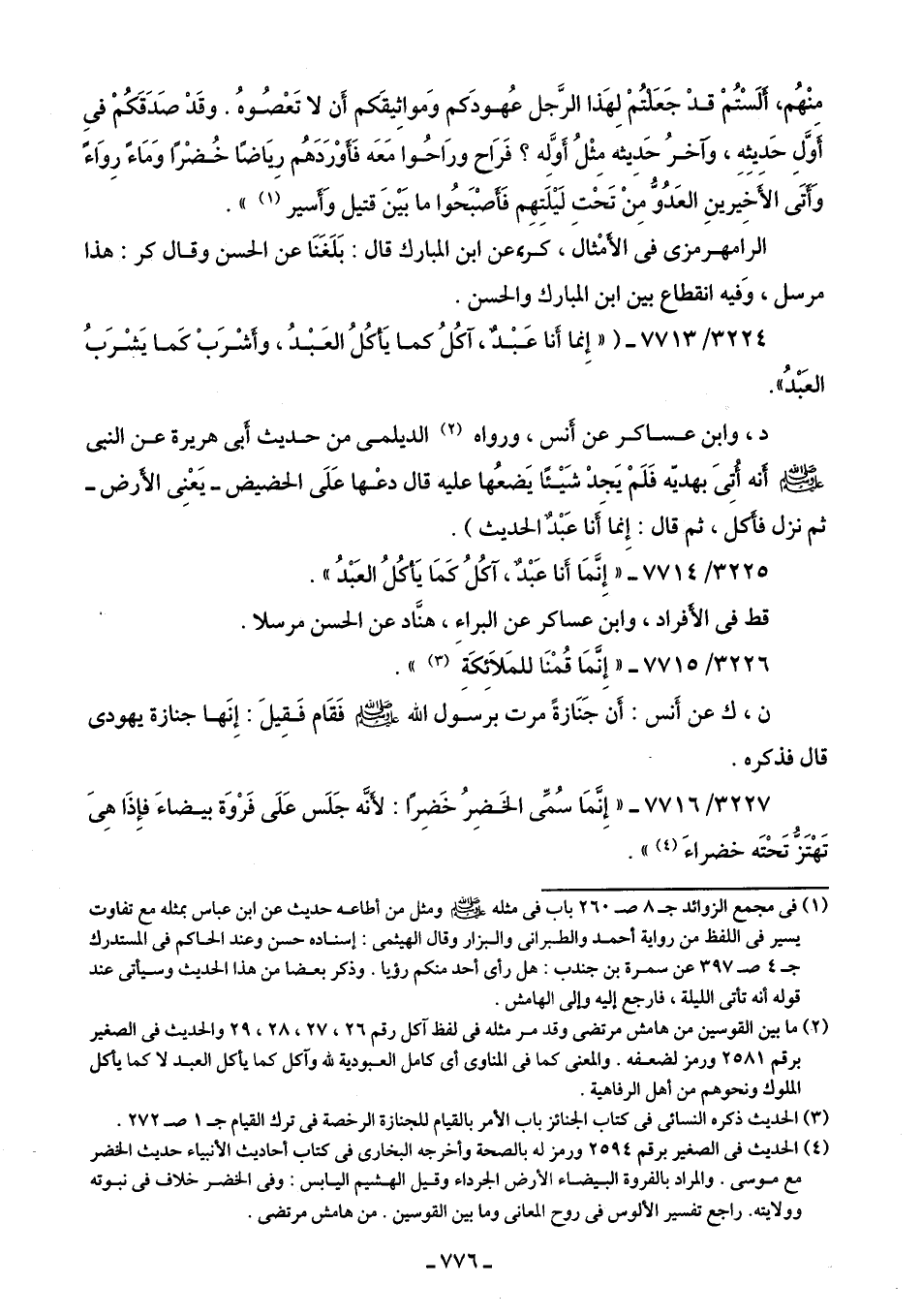 3225/ 7714 - "إِنَّمَا أَنا عَبْدٌ، آكُلُ كَمَا يَأكُلُ العَبْدُ".