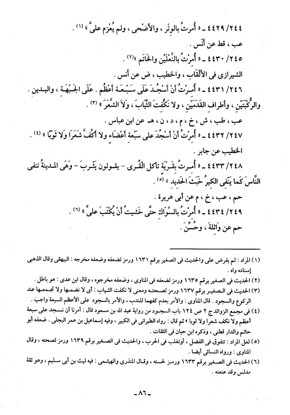 244/ 4429 - "أُمرتُ بالوتْر، والأَضْحى، ولم يُعْزم عليَّ" (¬1).