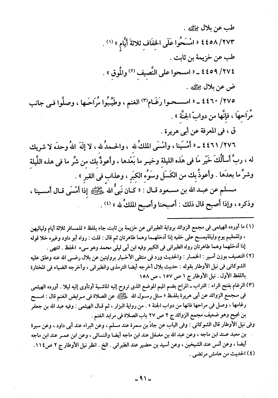 273/ 4458 - "امْسَحُوا عَلَى الخِفَافِ ثلاثةَ أَيَّامٍ" (¬1).