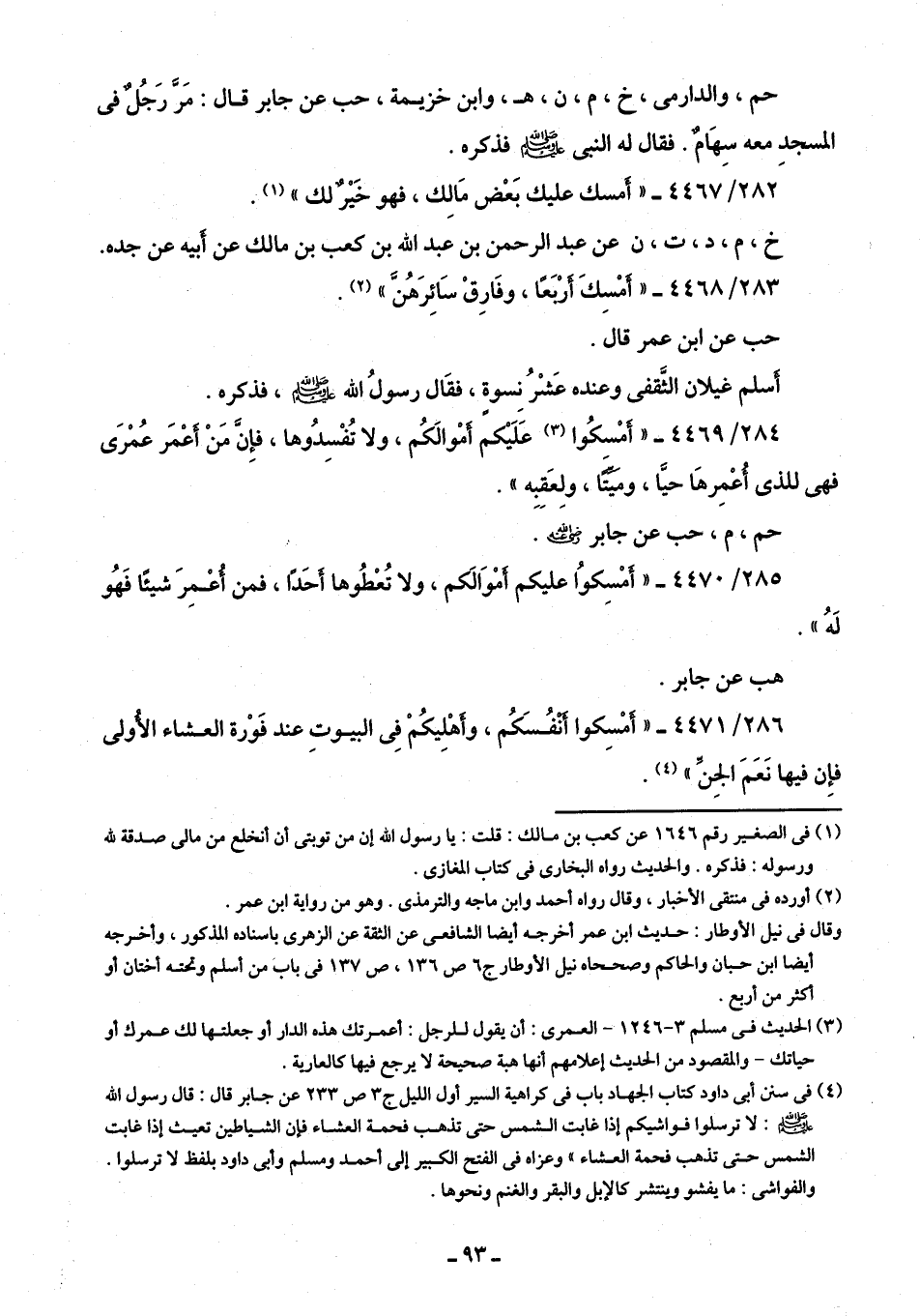 284/ 4469 - "أَمْسِكُوا (¬3) عَلَيكم أَمْوالكُم، ولا تُفْسِدُوها، فإِنَّ مَنْ أَعْمَر عُمْرَى فهي للذي أُعْمِرهَا حيًّا، ومَيِّتًا، ولِعَقِبِه".