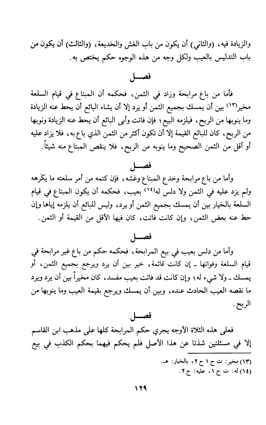 فعلى هذه الثلاثة الأوجه يجري حكم المرابحة كلها على مذهب ابن القاسم إلا في مسألتين شذتا عن هذا الأصل فلم يحكم فيهما بحكم الكذب في بيع