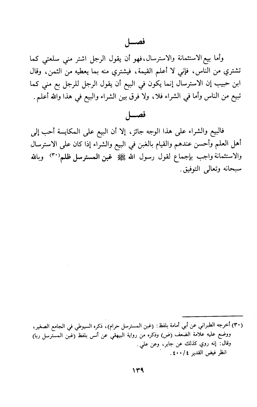 فالبيع والشراء على هذا الوجه جائز، إلا أن البيع على المكايسة أحب إلى أهل العلم وأحسن عندهم والقيام بالغبن في البيع والشراء إذا كان على الاسترسال والاستئمانة واجب بإجماع؛ لقول رسول الله - صَلَّى اللَّهُ عَلَيْهِ وَسَلَّمَ -: «غبن المسترسل ظلم» وبالله سبحانه وتعالى التوفيق.