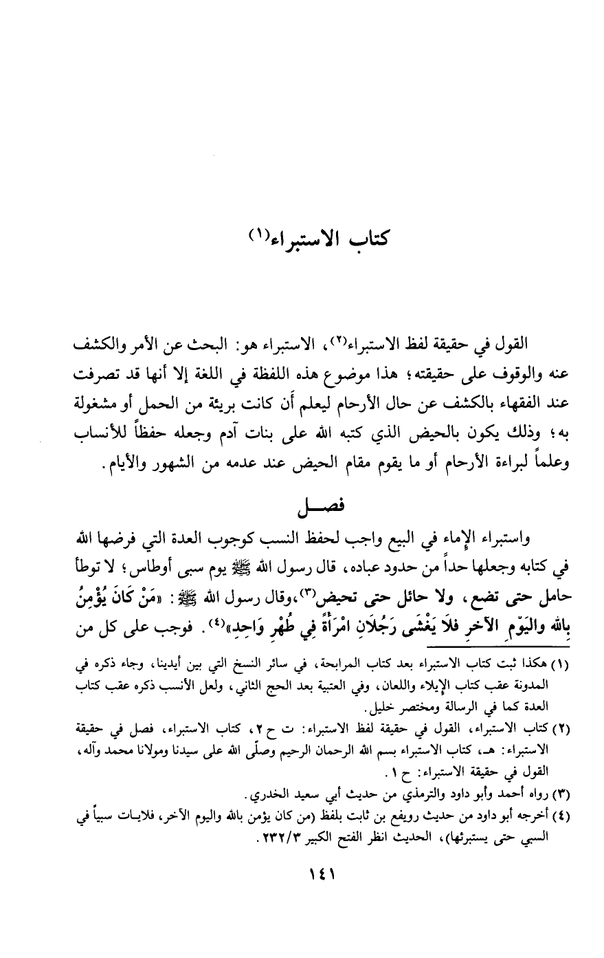 إلا أنها قد تصرفت عند الفقهاء بالكشف عن حال الأرحام ليعلم أَن كانت بريئة من الحمل أو مشغولة به؛ وذلك يكون بالحيض الذي كتبه الله على بنات آدم، وجعله حفظا للأنساب، وعلما لبراءة الأرحام، أو ما يقوم مقام الحيض عند عدمه من الشهور والأيام.