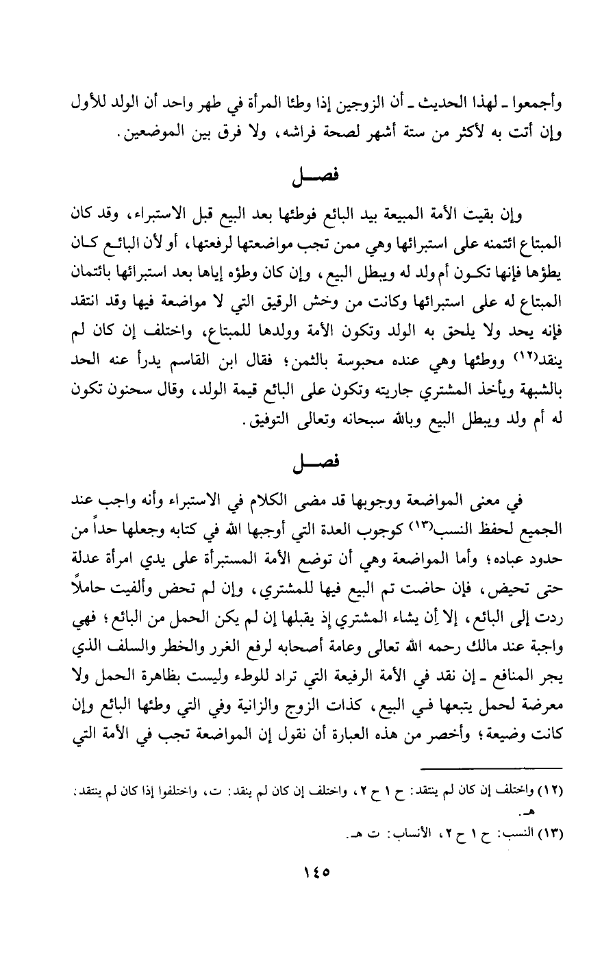 في معنى المواضعة ووجوبها قد مضى الكلام في الاستبراء، وأنه واجب عند الجميع لحفظ النسب كوجوب العدة التي أوجبها الله في كتابه وجعلها حدا من حدود عباده.