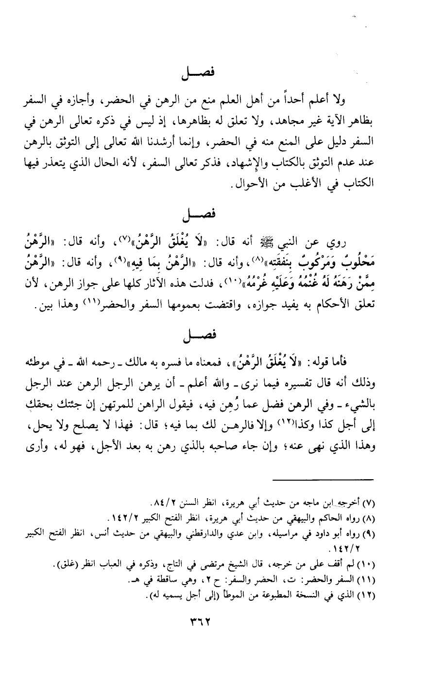 ولا أعلم أحدا من أهل العلم منع من الرهن في الحضر، وأجازه في السفر بظاهر الآية غير مجاهد، ولا تعلق له بظاهرها، إذ ليس في ذكره تعالى الرهن في السفر دليل على المنع منه في الحضر، وإنما أرشدنا الله تعالى إلى التوثق بالرهن عند عدم التوثق بالكتاب والإشهاد، فذكر تعالى السفر؛ لأنه الحال الذي يتعذر فيها الكتاب في الأغلب من الأحوال.