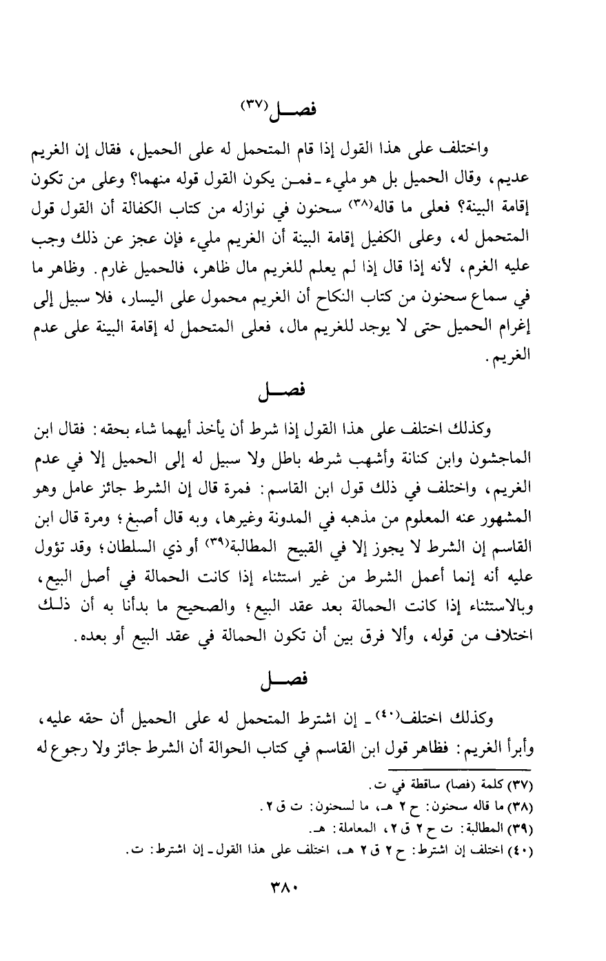 وظاهر ما في سماع سحنون من كتاب النكاح أن الغريم محمول على اليسار، فلا سبيل إلى إغرام الحميل حتى لا يوجد للغريم مال، فعلى المتحمل له إقامة البينة على عدم الغريم.