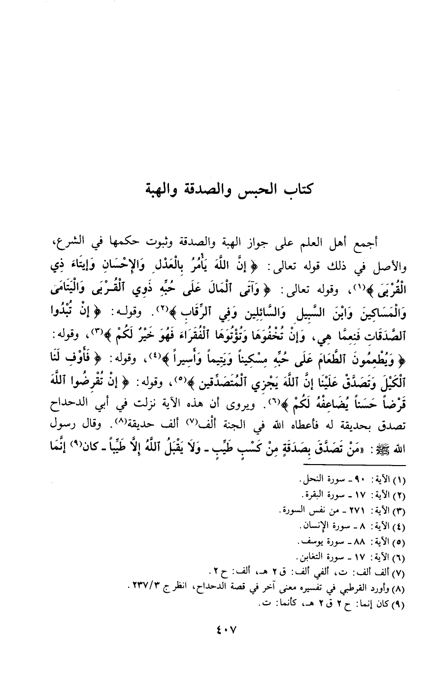 أجمع أهل العلم على جواز الهبة والصدقة وثبوت حكمها في الشرع، والأصل في ذلك قَوْله تَعَالَى: {إِنَّ اللَّهَ يَأْمُرُ بِالْعَدْلِ وَالإِحْسَانِ وَإِيتَاءِ ذِي الْقُرْبَى} [النحل: 90]، وقَوْله تَعَالَى: {وَآتَى الْمَالَ عَلَى حُبِّهِ ذَوِي الْقُرْبَى وَالْيَتَامَى وَالْمَسَاكِينَ وَابْنَ السَّبِيلِ وَالسَّائِلِينَ وَفِي الرِّقَابِ} [البقرة: 177]. وقوله: {إِنْ تُبْدُوا الصَّدَقَاتِ فَنِعِمَّا هِيَ وَإِنْ تُخْفُوهَا وَتُؤْتُوهَا الْفُقَرَاءَ فَهُوَ خَيْرٌ لَكُمْ} [البقرة: 271]، وقوله: {وَيُطْعِمُونَ الطَّعَامَ عَلَى حُبِّهِ مِسْكِينًا وَيَتِيمًا وَأَسِيرًا} [الإنسان: 8]، وقوله: {فَأَوْفِ لَنَا الْكَيْلَ وَتَصَدَّقْ عَلَيْنَا إِنَّ اللَّهَ يَجْزِي الْمُتَصَدِّقِينَ} [يوسف: 88]، وقوله: {إِنْ تُقْرِضُوا اللَّهَ قَرْضًا حَسَنًا يُضَاعِفْهُ لَكُمْ} [التغابن: 17]. ويروى أن هذه الآية نزلت في أبي الدحداح تصدق بحديقة له فأعطاه الله في الجنة ألف ألف حديقة. وقال رسول الله - صَلَّى اللَّهُ عَلَيْهِ وَسَلَّمَ -: «من تصدق بصدقة من كسب طيب - ولا يقبل الله إلا طيبا - كان إنما