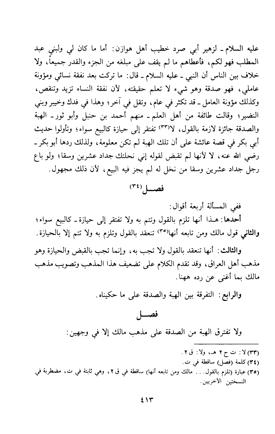والثالث: أنها تنعقد بالقول ولا تجب به، وإنما تجب بالقبض والحيازة وهو مذهب أهل العراق، وقد تقدم الكلام على تضعيف هذا المذهب وتصويب مذهب مالك بما أغنى عن رده ههنا.