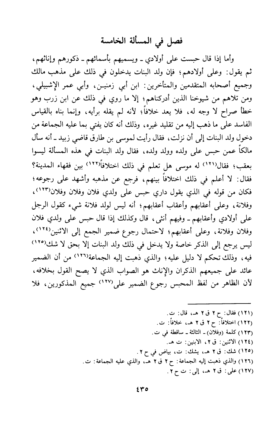 في المسألة الخامسة
