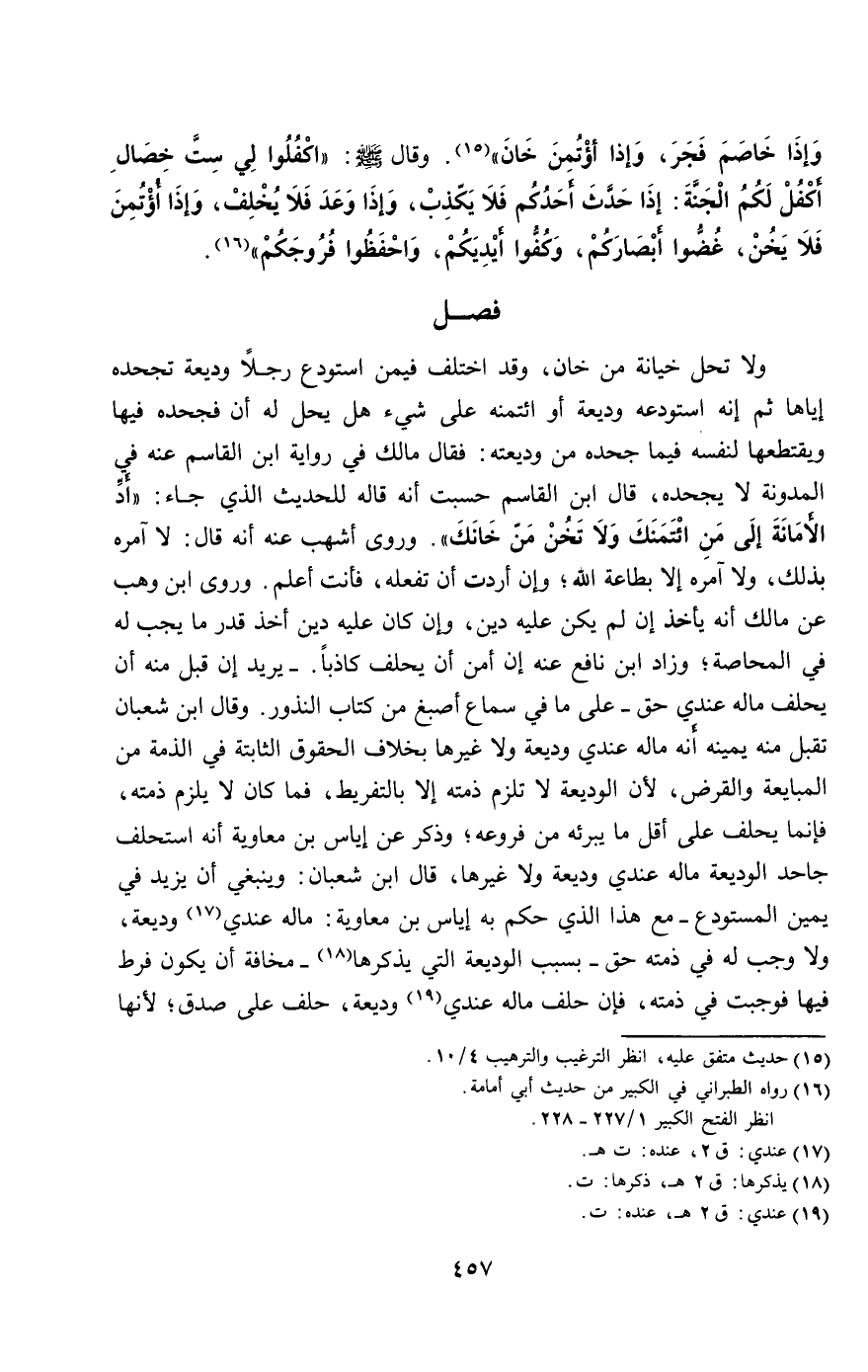 وإذا خاصم فجر، وإذا أؤتمن خان». وقال - صَلَّى اللَّهُ عَلَيْهِ وَسَلَّمَ -: «اكفلوا لي ست خصال أكفل لكم الجنة: إذا حدث أحدكم فلا يكذب، وإذا وعد فلا يخلف، وإذا أؤتمن فلا يخن، غضوا أبصاركم، وكفوا أيديكم، واحفظوا فروجكم».