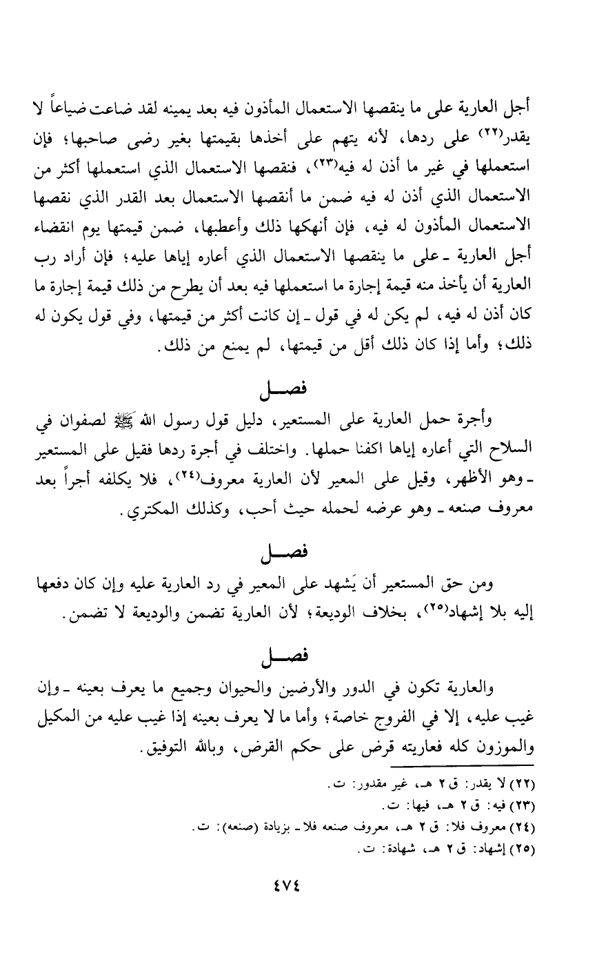 وأجرة حمل العارية على المستعير، دليل قول رسول الله - صَلَّى اللَّهُ عَلَيْهِ وَسَلَّمَ - لصفوان في السلاح التي أعاره إياها اكفنا حملها. واختلف في أجرة ردها فقيل على المستعير - وهو الأظهر، وقيل على المعير لأن العارية معروف، فلا يكلفه أجرا بعد معروف صنعه - وهو عرضه لحمله حيث أحب، وكذلك المكتري.