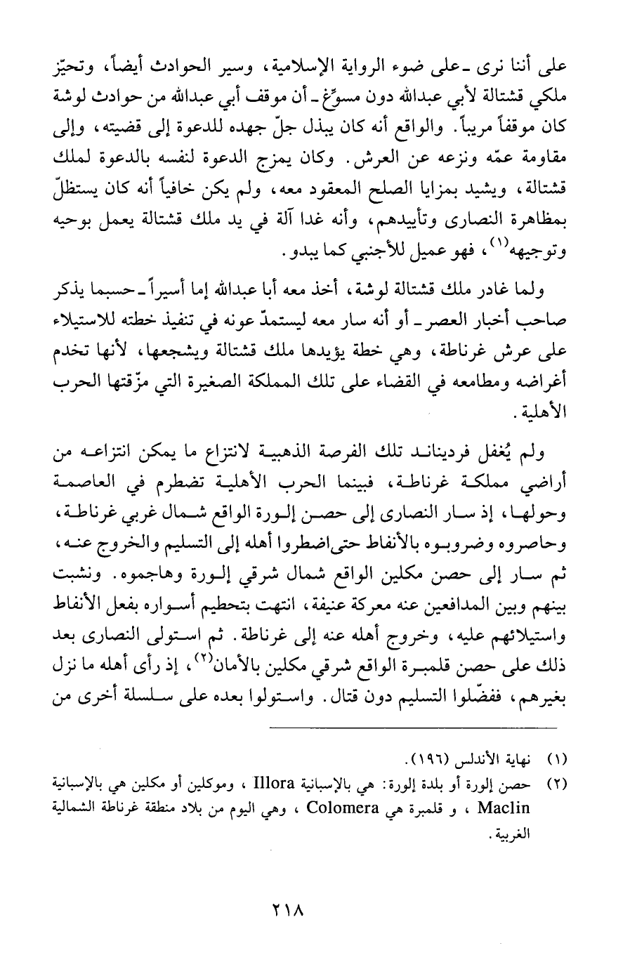 (2) حصن إلورة أو بلدة إلورة: هي بالإسبانية Illora، وموكلين أو مكلين هي بالإسبانية Maclin، وقلمبرة هي Colomera، وهي اليوم من بلاد منطقة غرناطة الشمالية الغربية.