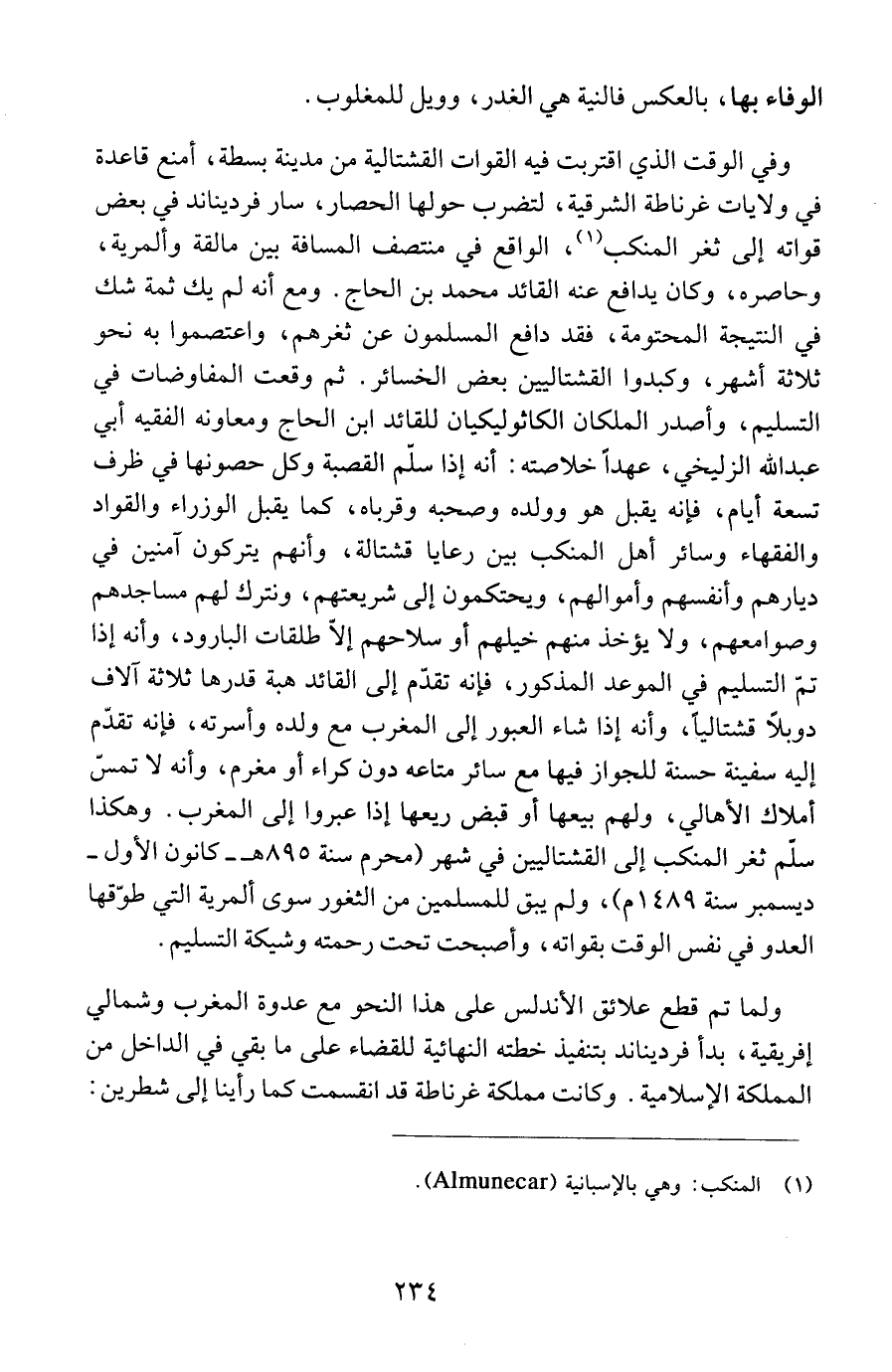 (1) المنكب: وهي بالإسبانية ( Almunecar) .