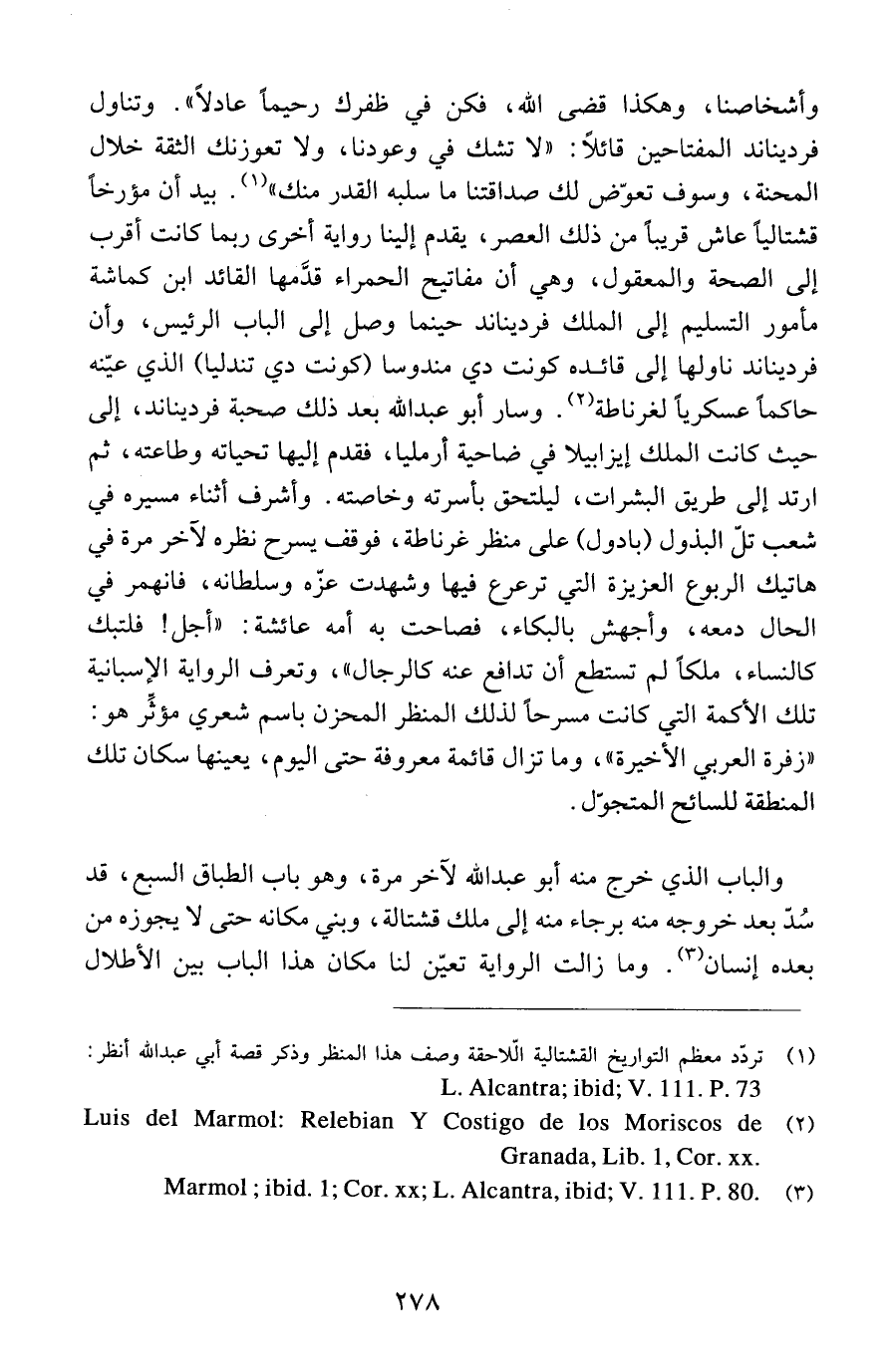 (1) تردّد معظم التواريخ القشتالية اللاّحقة وصف هذا المنظر وذكر قصة أبي عبد الله أنظر: L. Alcantra; ibid; V. 111. P. 73