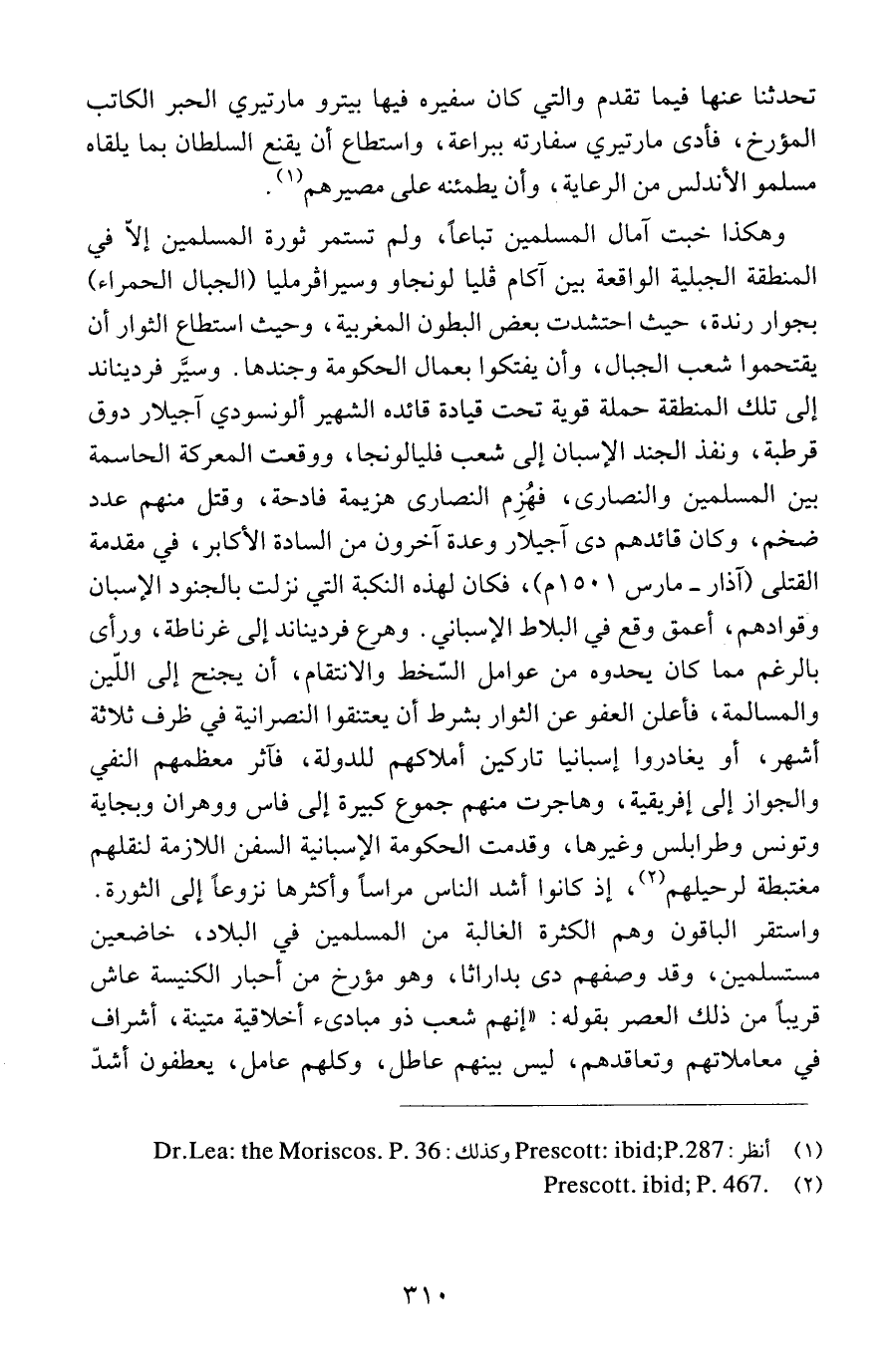 (1) أنظر: Prescott: ibid; P. 287 وكذلك: Dr. Lea: The Moriscos. P. 36