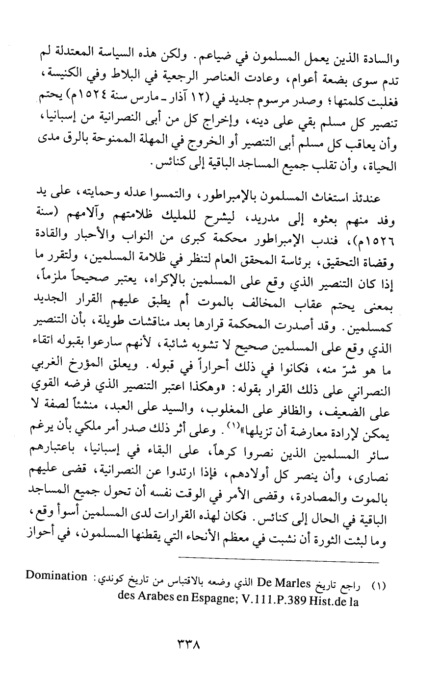 (1) راجع تاريخ De Marles الذي وضعه بالاقتباس من تاريخ كوندي: Domination des Arabes en Espagne; V.111. P. 389 Hist.de la
