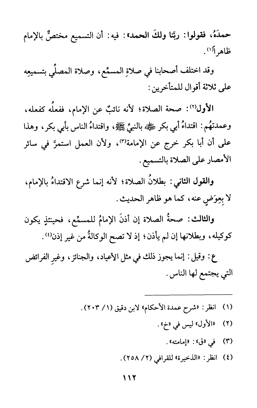 وقد اختلف أصحابنا في صلاة المسمع، وصلاة المصلي بتسميعه على ثلاثة أقوال للمتأخرين: