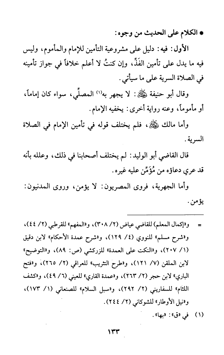وأما مالك - رحمه الله -، فلم يختلف قوله في تأمين الإمام في الصلاة السرية.