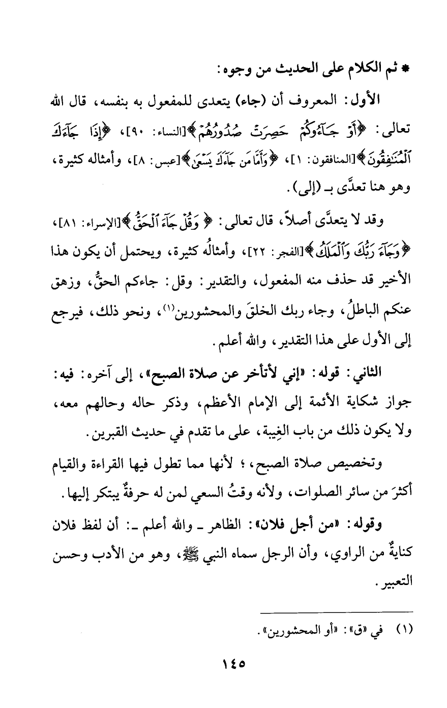 الأول: المعروف أن (جاء) يتعدى للمفعول به بنفسه، قال الله تعالى: {أَوْ جَاءُوكُمْ حَصِرَتْ صُدُورُهُمْ} [النساء: 90]، {إِذَا جَاءَكَ الْمُنَافِقُونَ} [المنافقون: 1]، {وَأَمَّا مَنْ جَاءَكَ يَسْعَى} [عبس: 8]، وأمثاله كثيرة، وهو هنا تعدى بـ (إلى).