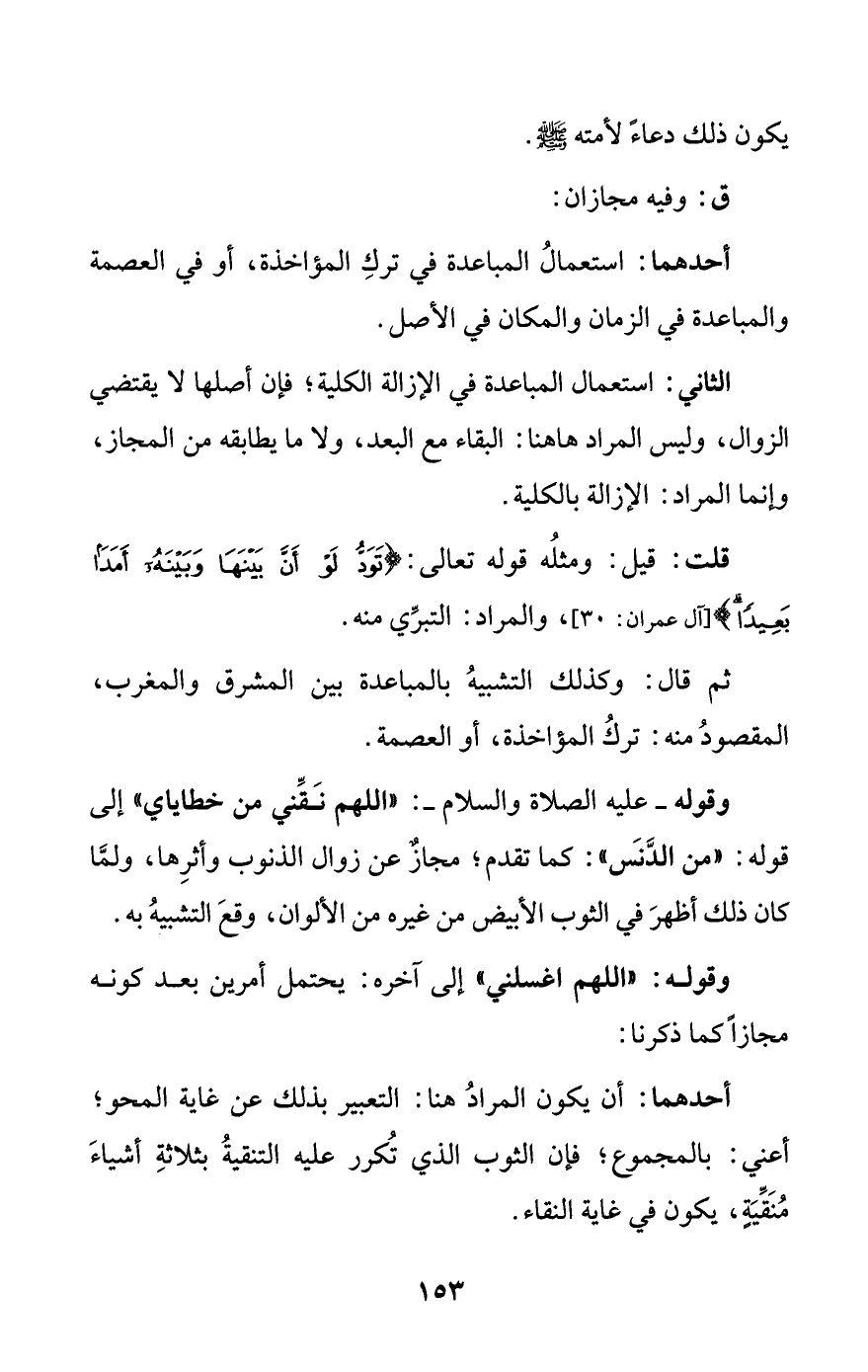 ثم قال: وكذلك التشبيه بالمباعدة بين المشرق والمغرب، المقصود منه: ترك المؤاخذة، لأأو العصمة.