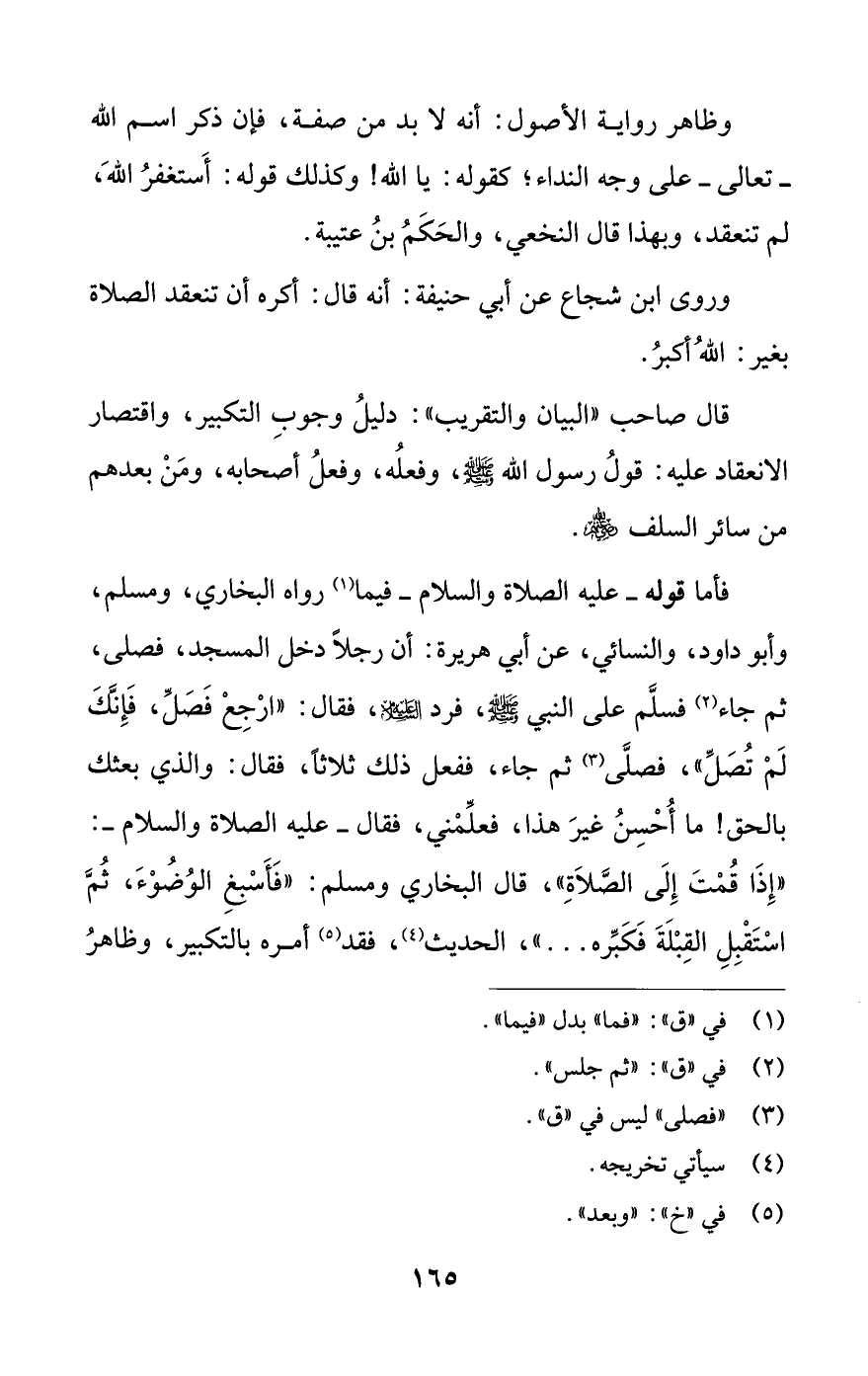 فأما قوله -عليه الصلاة والسلام- فيما (¬1) رواه البخاري، ومسلم، وأبو داود، والنسائي، عن أبي هريرة: أن رجلا دخل المسجد، فصلى، ثم جاء (¬2) فسلم على النبي - صلى الله عليه وسلم -، فرد عليه السلام، فقال: «ارجع فصل، فإنك لم تصل»، فصلى (¬3) ثم جاء، ففعل ذلك ثلاثا، فقال: والذي بعثك بالحق! لا أحسن غير هذا، فعلمني، فقال -عليه الصلاة والسلام-: «إذا قمت إلى الصلاة»، ققال البخاري ومسلم: «فأسبغ الوضوء، ثم استقبل القبلة فكبره ..»، الحديث (¬4)، فقد (¬5) أمره بالتكبير، وظاهر