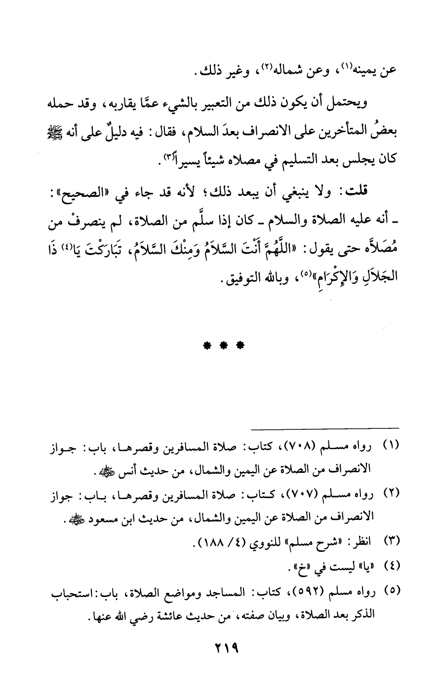 (¬5) رواه مسلم (592)، كتاب: المساجد ومواضع الصلاة، باب: استحباب الذكر بعد الصلاة، وبيان صفته، من حديث عائشة -رضي الله عنها-.