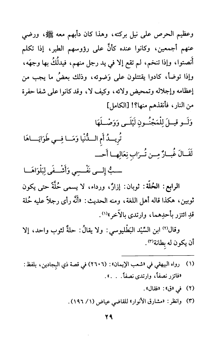 (¬1) رواه البيهقي في «شعب الإيمان»: (2606) في قصة ذي البجادين، بلفظ: «فاتزر نصفا، وارتدى نصفا ...».