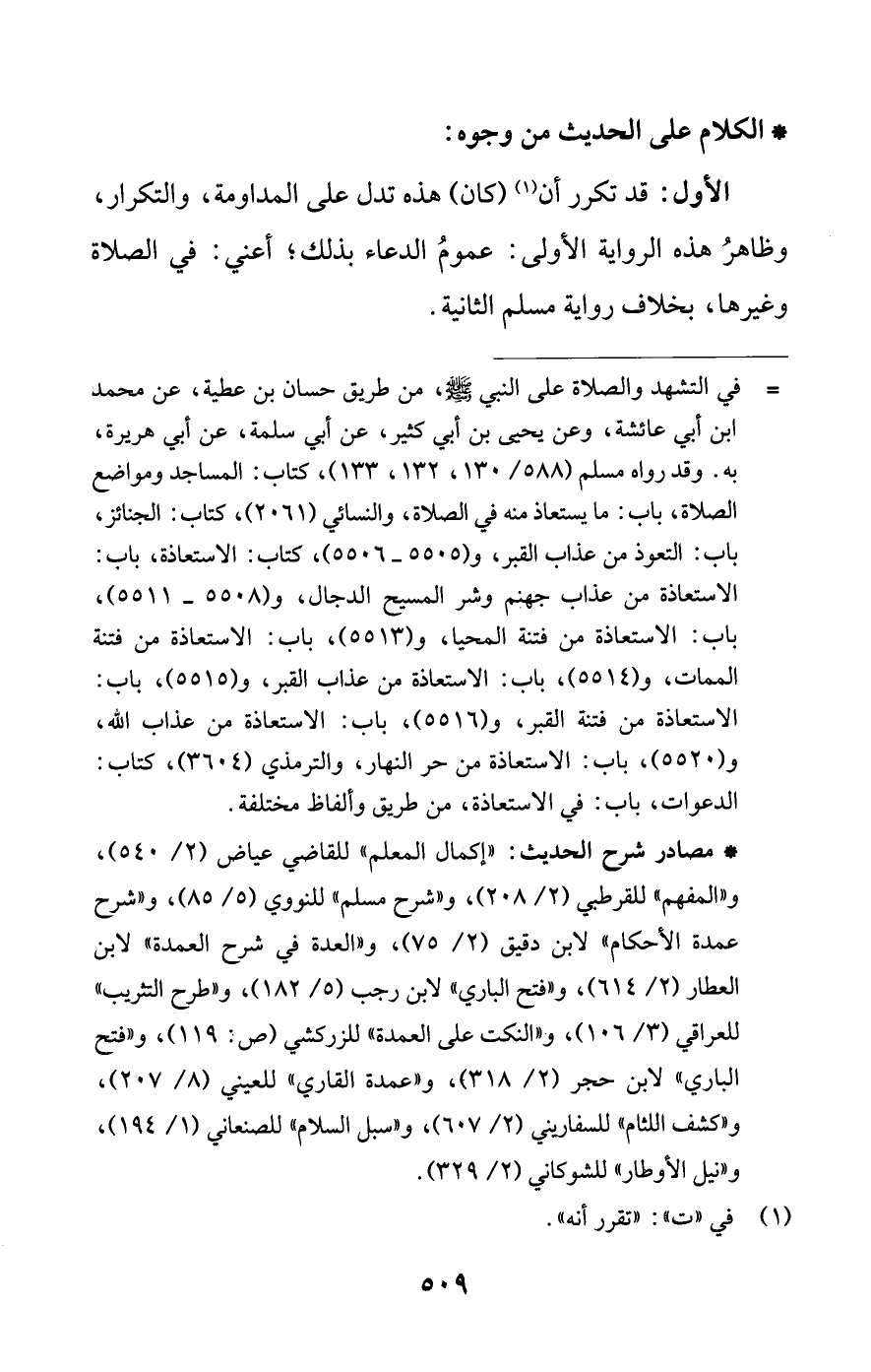 الأول: قد تكرر أن (¬1) (كان) هذه تدل على المداومة، والتكرار، وظاهرُ هذه الرواية الأولى: عمومُ الدعاء بذلك؛ أعني: في الصلاة وغيرها، بخلاف رواية مسلم الثانية.
