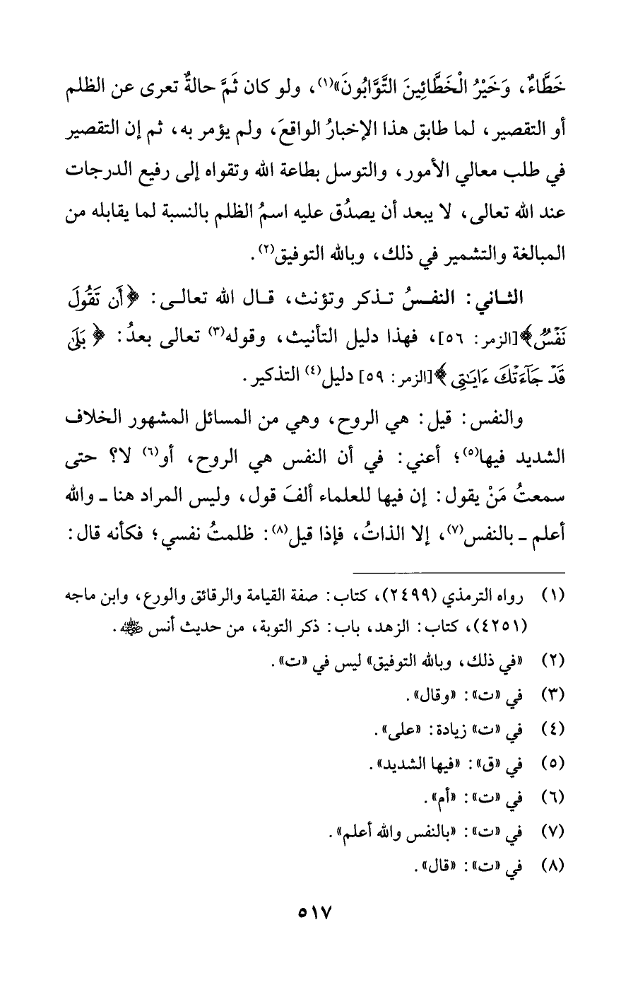 (¬1) رواه الترمذي (2499)، كتاب: صفة القيامة والرقائق والورع، وابن ماجه (4251)، كتاب: الزهد، باب: ذكر التوبة، من حديث أنس -رضي اللَّه عنه-.
