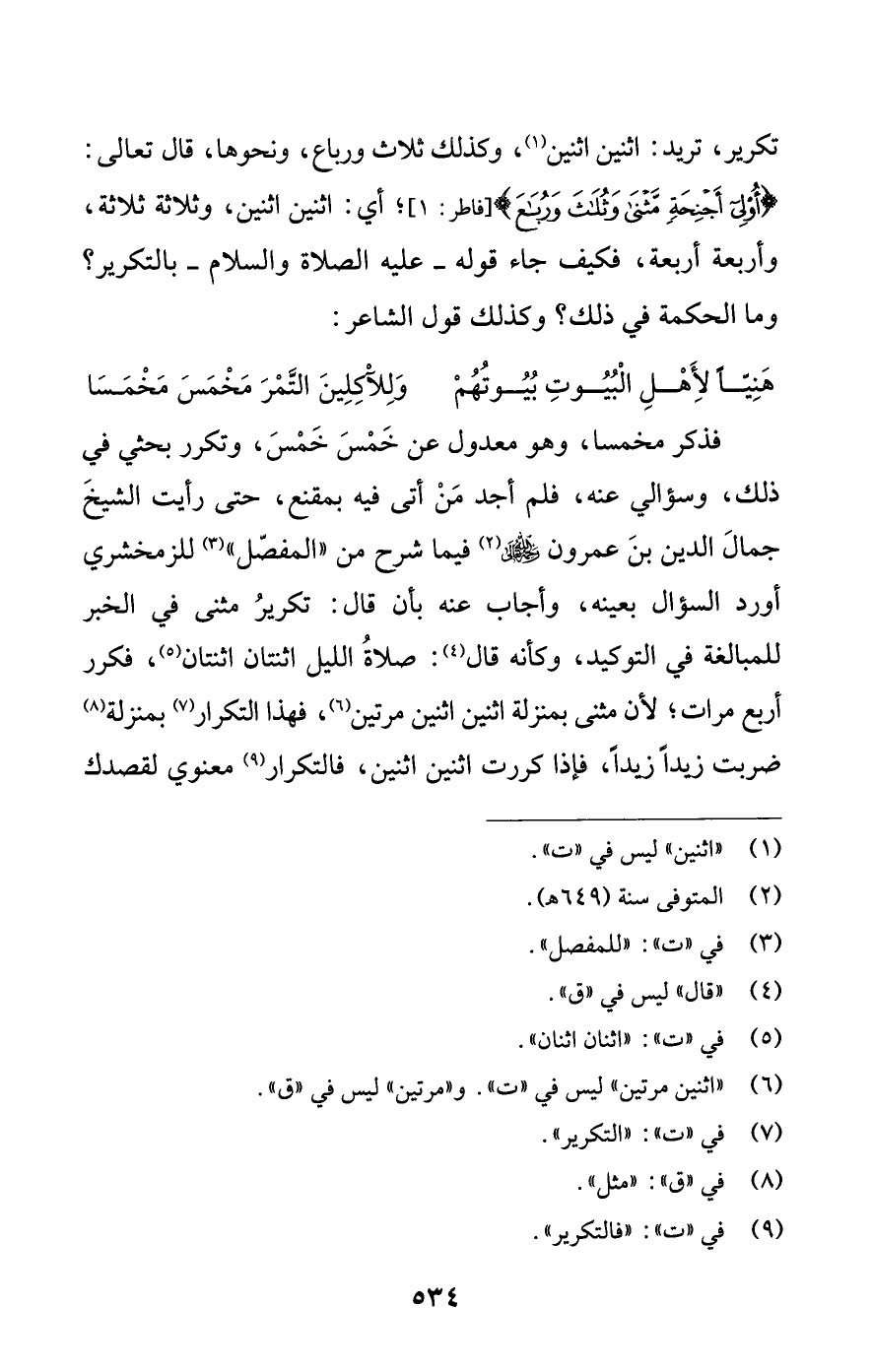 (¬6) "اثنين مرتين" ليس في "ت". و"مرتين" ليس في "ق".
