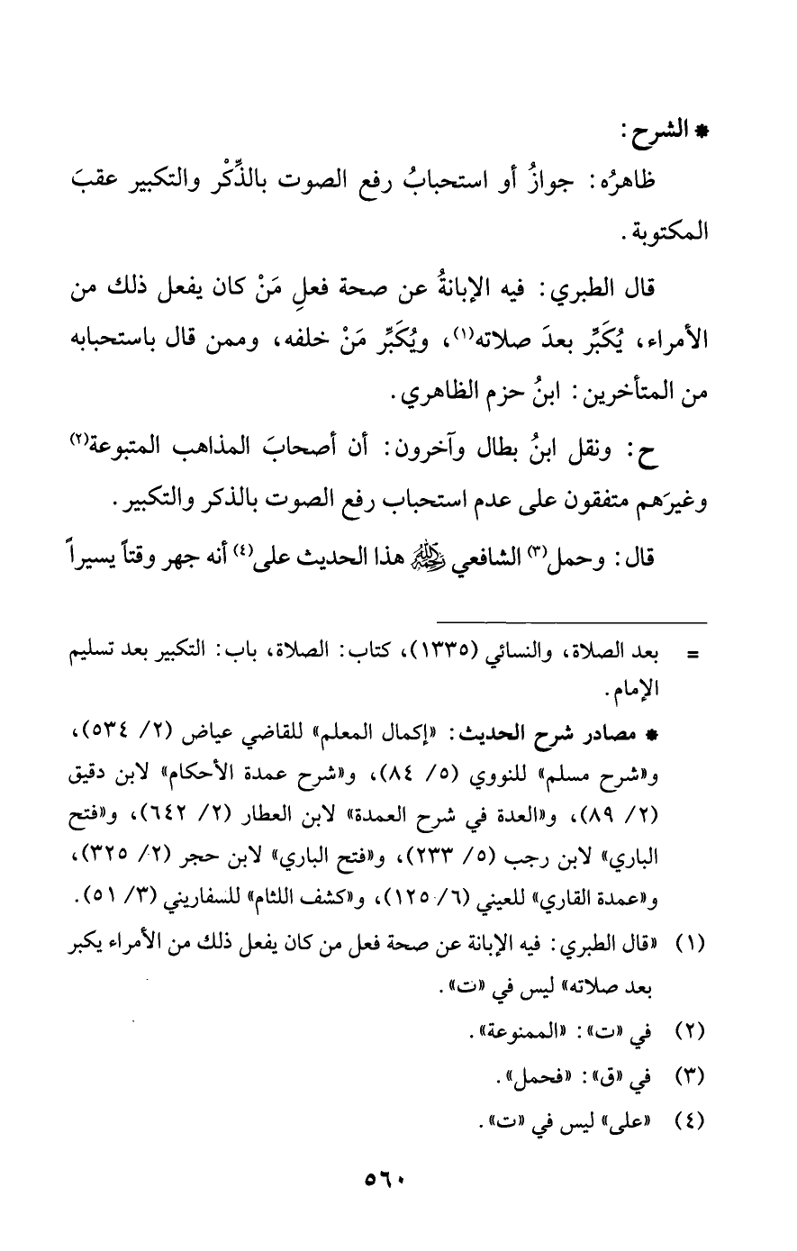 (¬1) "قال الطبري: فيه الإبانة عن صحة فعل من كان يفعل ذلك من الأمراء يكبر بعد صلاته" ليس في "ت".