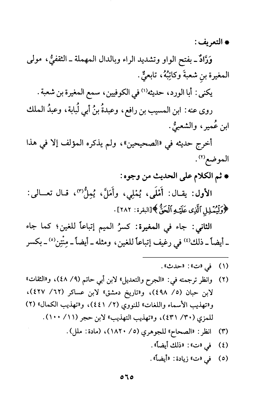 وَرَّادٌ -بفتح الواو وتشديد الراء وبالدال المهملة- الثقفيُّ، مولى المغيرة بنِ شعبةَ وكاتِبُهُ، تابعيٌّ.