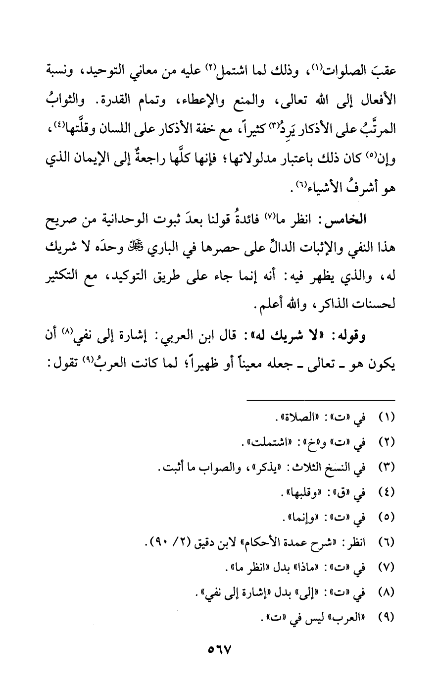 الخامس: انظر ما (¬7) فائدةُ قولنا بعدَ ثبوت الوحدانية من صريح هذا النفي والإثبات الدالِّ على حصرها في الباري عز وجل وحدَه لا شريك له، والذي يظهر فيه: أنه إنما جاء على طريق التوكيد، مع التكثير لحسنات الذاكر، واللَّه أعلم.