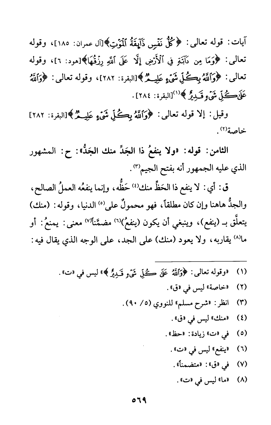 (¬1) "وقوله تعالى: {وَاللَّهُ عَلَى كُلِّ شَيْءٍ قَدِيرٌ} " ليس في "ت".