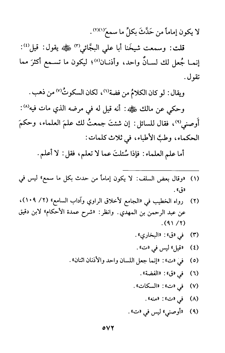 (¬2) رواه الخطيب في "الجامع لأخلاق الراوي وآداب السامع" (2/ 109)، عن عبد الرحمن بن المهدي. وانظر: "شرح عمدة الأحكام" لابن دقيق (2/ 91).