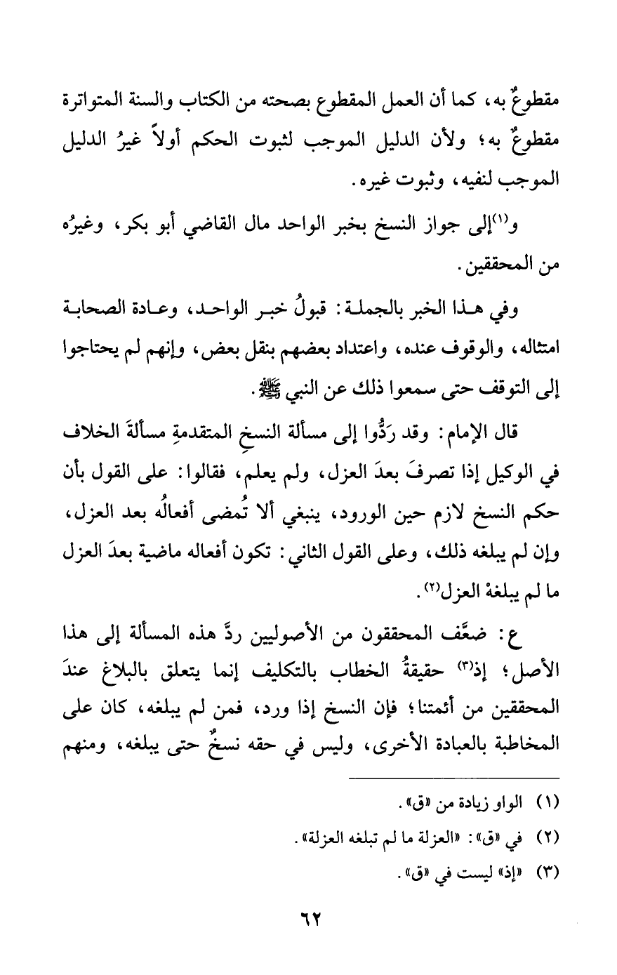 و (¬1) إلى جواز النسخ بخبر الواحد مال القاضي أبو بكر، وغيره من المحققين.