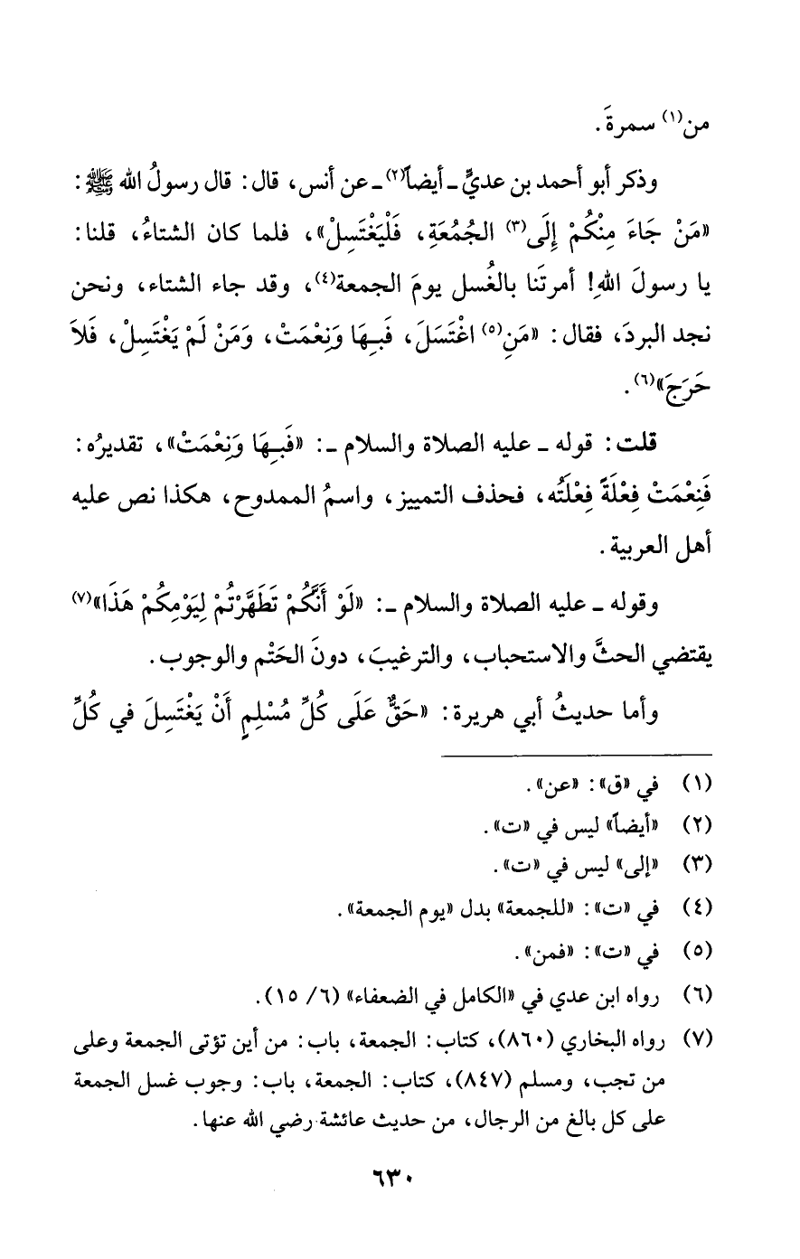 (¬7) رواه البخاري (860)، كتاب: الجمعة، باب: من أين تؤتى الجمعة وعلى من تجب، ومسلم (847)، كتاب: الجمعة، باب: وجوب غسل الجمعة على كل بالغ من الرجال، من حديث عائشة. رضي اللَّه عنها.