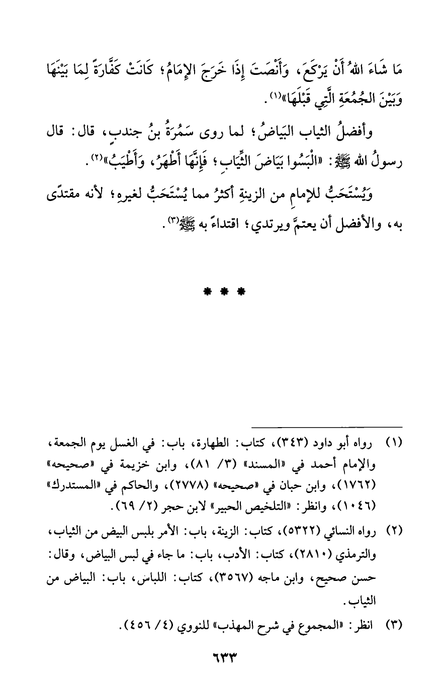 (¬2) رواه النسائي (5322)، كتاب: الزينة، باب: الأمر بلبس البيض من الثياب، والترمذي (2810)، كتاب: الأدب، باب: ما جاء في لبس البياض، وقال: حسن صحيح، وابن ماجه (3567)، كتاب: اللباس، باب: البياض من الثياب.