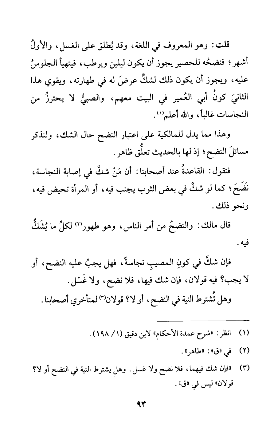 وهذا مما يدل للمالكية على اعتبار النضح حال الشك، ولنذكر مسائل النضح؛ إذ لها بالحديث تعلق ظاهر.