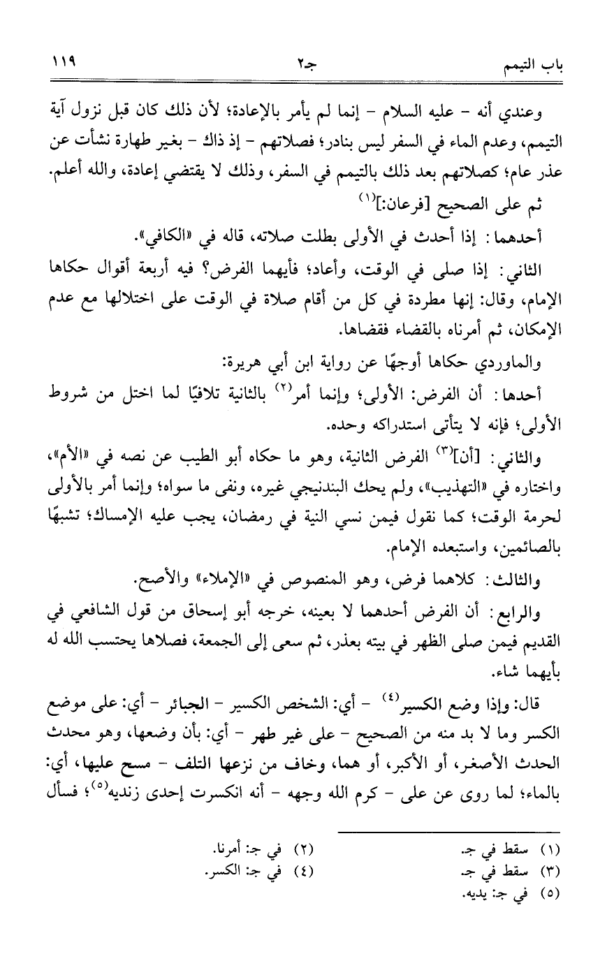 ثم على الصحيح [فرعان:].