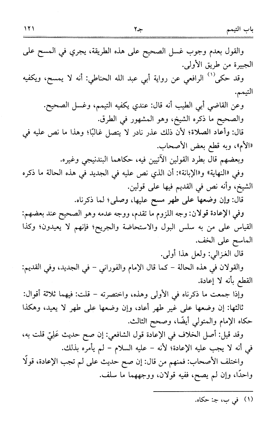 وفي الإعادة قولان: وجه اللزوم ما تقدم، ووجه عدمه وهو الصحيح عند بعضهم: القياس على من به سلس البول والاستحاضة والجريح؛ فإنهم لا يعيدون؛ وكذا الماسح على الخف.