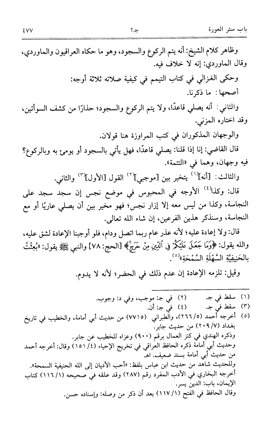 قال: وكذا الأوجه في المحبوس في موضع نجس إن سجد سجد على النجاسة، وكذا من ليس معه إلا إزار نجس؛ فهو مخير بين أن يصلي عارياً أو مع النجاسة، وسنذكر هذين الفرعين، إن شاء الله تعالى.