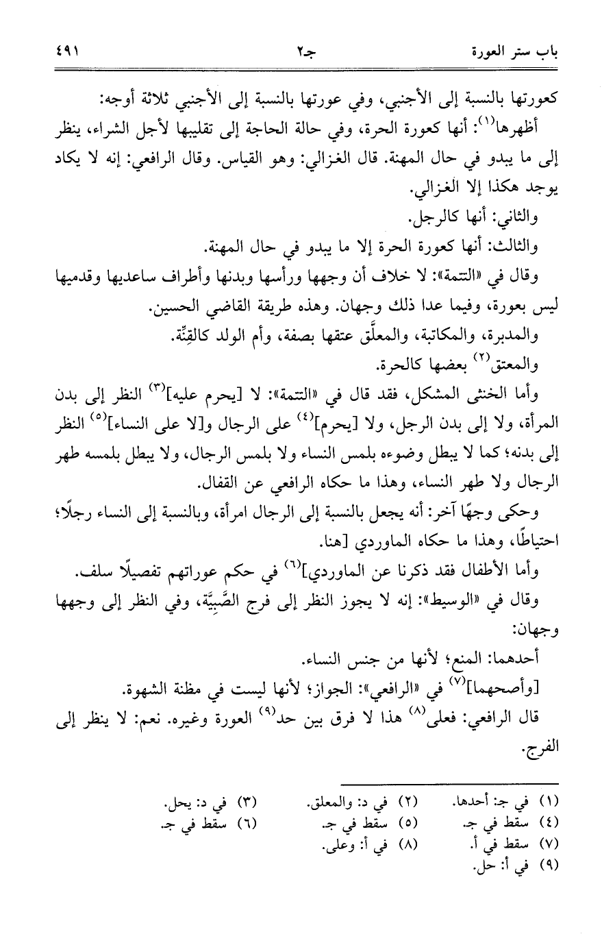 أظهرها: أنها كعورة الحرة، وفي حالة الحاجة إلى تقليبها لأجل الشراء، ينظر إلى ما يبدو في حال المهنة. قال الغزالي: وهو القياس. وقال الرافعي: إنه لا يكاد يوجد هكذا إلا الغزالي.