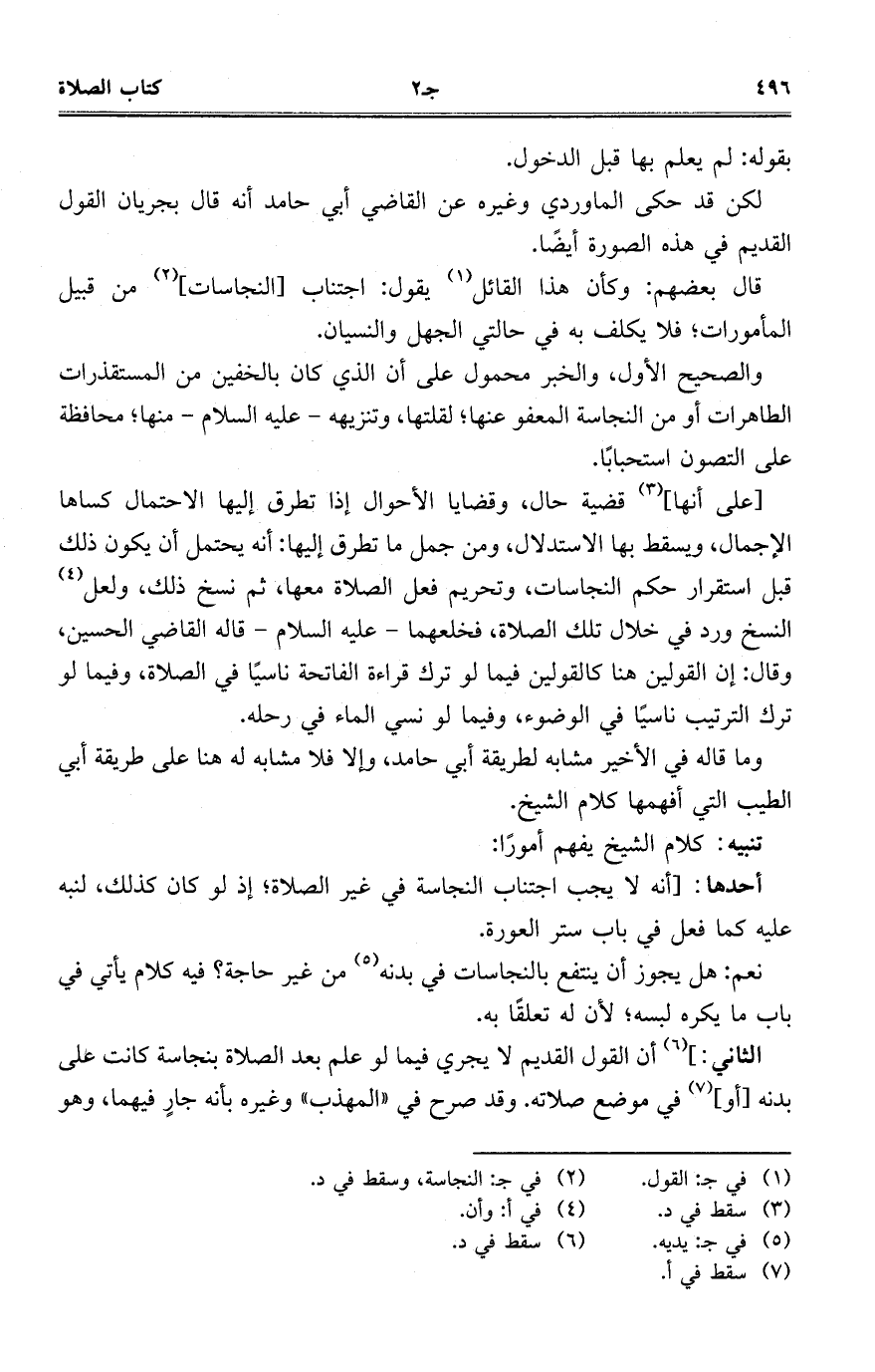قال بعضهم: وكأن هذا القائل يقول: اجتناب [النجاسات] من قبيل المأمورات؛ فلا يكلف به في حالتي الجهل والنسيان.