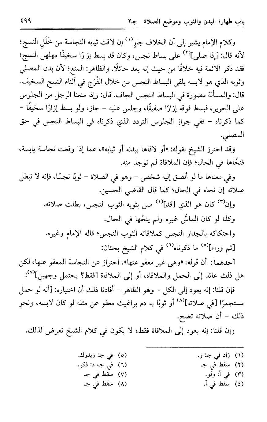 وإن قلنا: إنه يعود إلى الملاقاة فقط، لا يكون في كلام الشيخ تعرض لذلك.