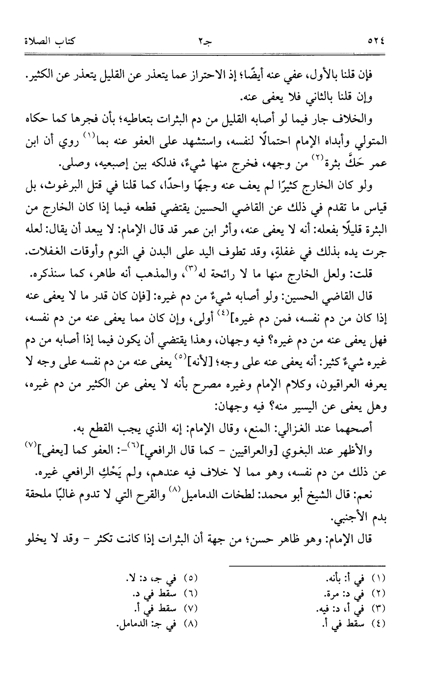 قال الإمام: وهو ظاهر حسن؛ من جهة أن البثرات إذا كانت تكثر- وقد لا يخلو