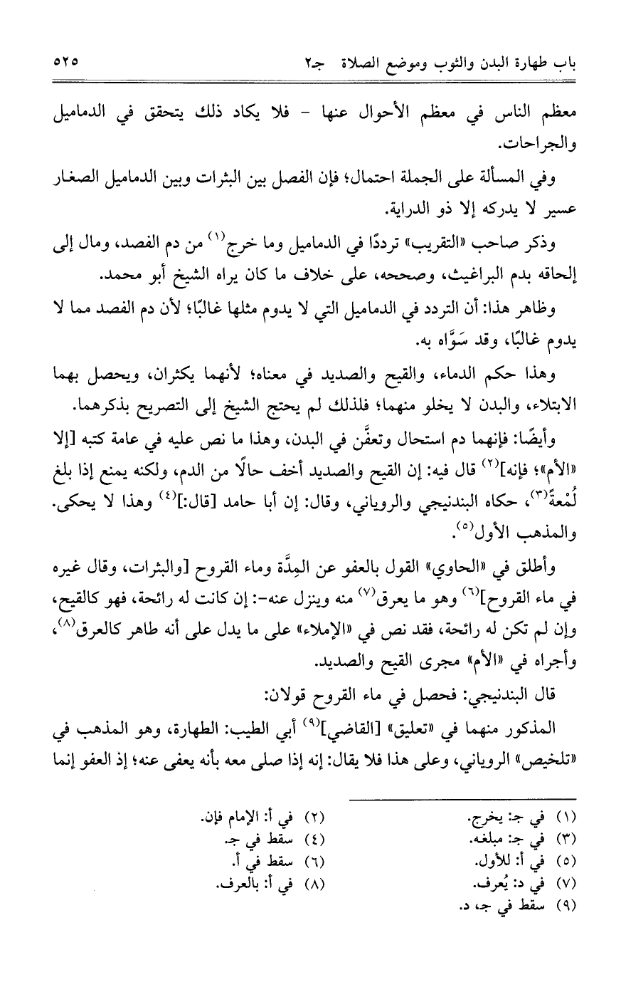 وذكر صاحب "التقريب" تردداً في الدماميل وما خرج من دم الفصد، ومال إلى إلحاقه بدم البراغيث، وصححه، على خلاف ما كان يراه الشيخ أبو محمد.